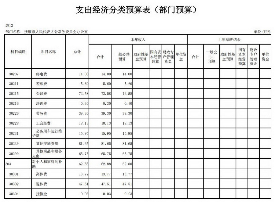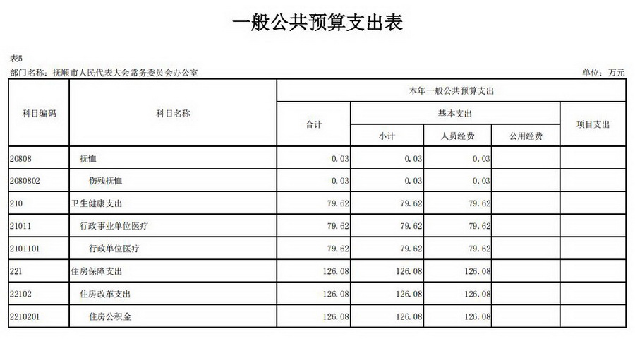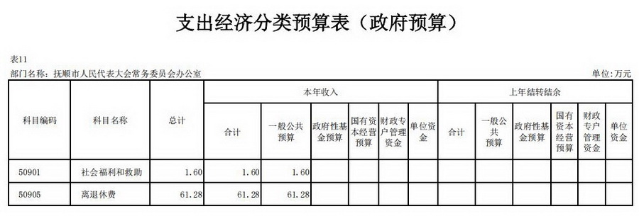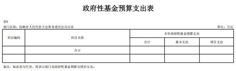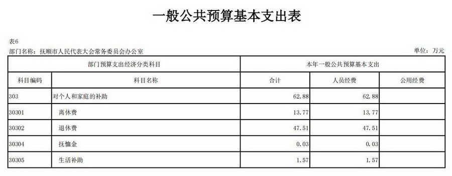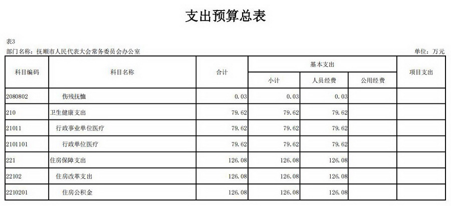2026年抚顺市人民代表大会常务委员会办公室部门预算公开表