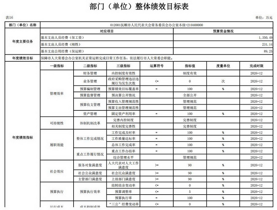 16、2026年部门(单位)整体绩效目标表;