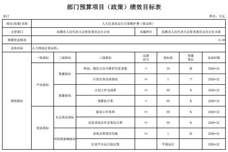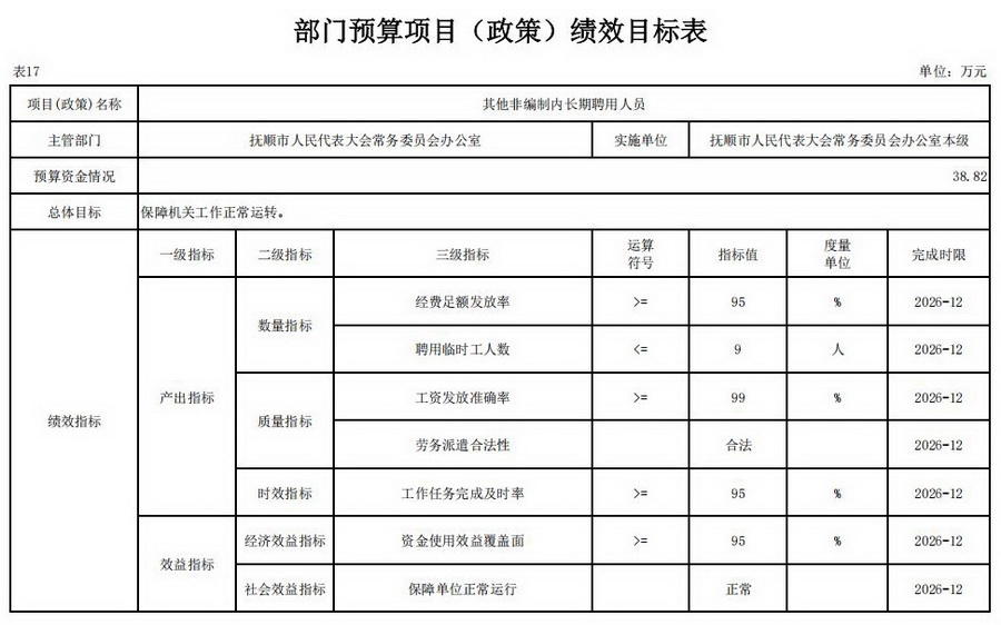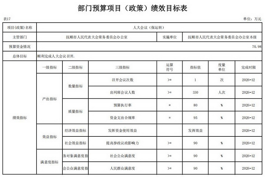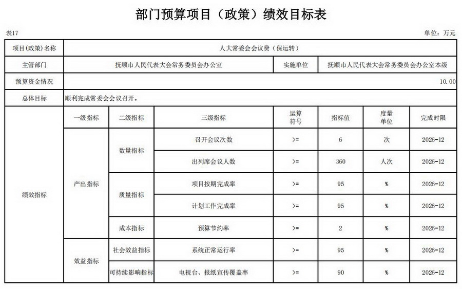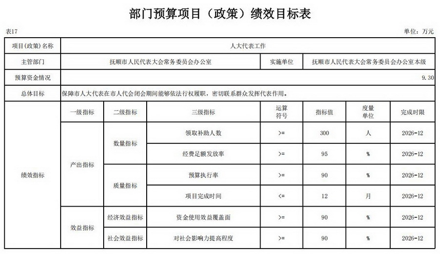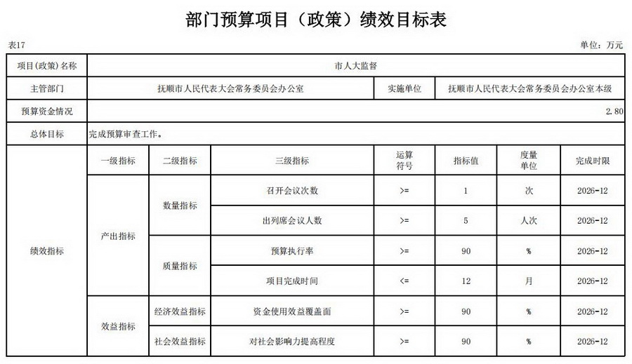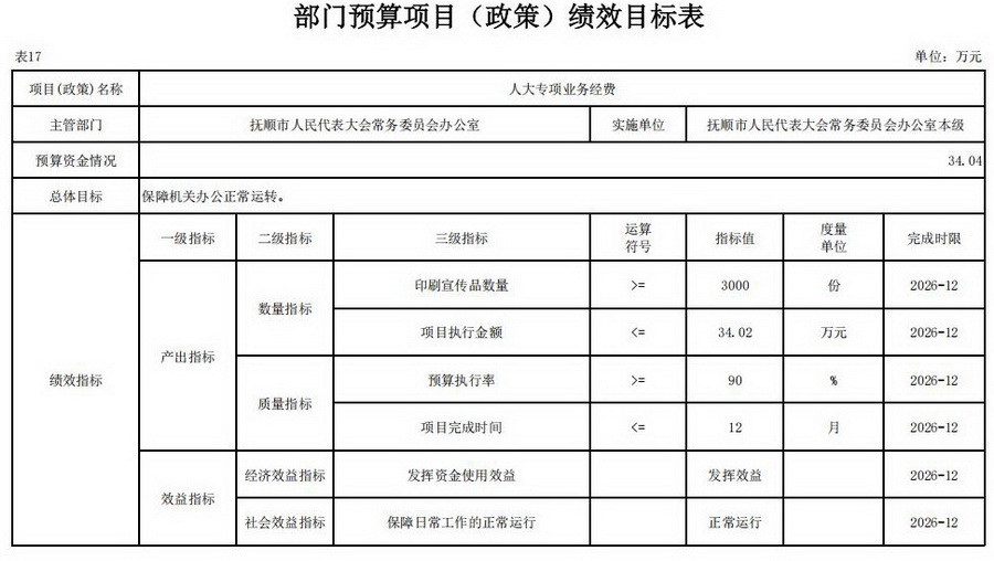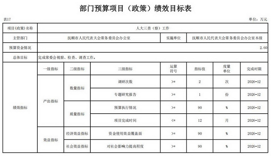 17、2026年部门预算项目(政策)绩效目标表;