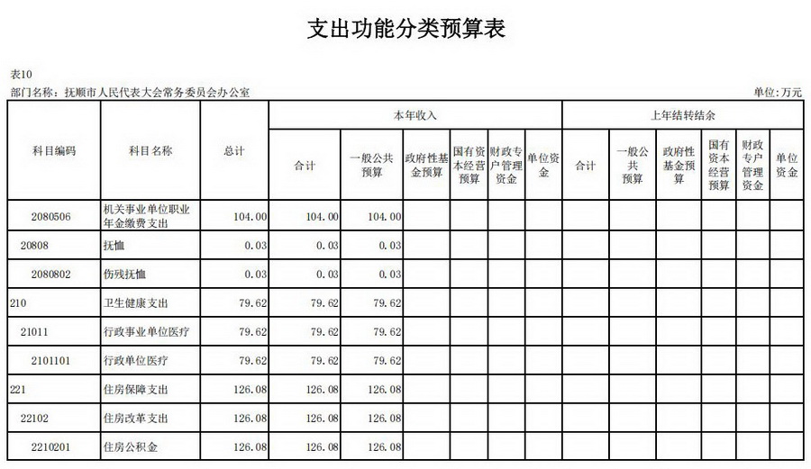 第二部分抚顺市人民代表大会常务委员会办公室2026年部门预算公开表: